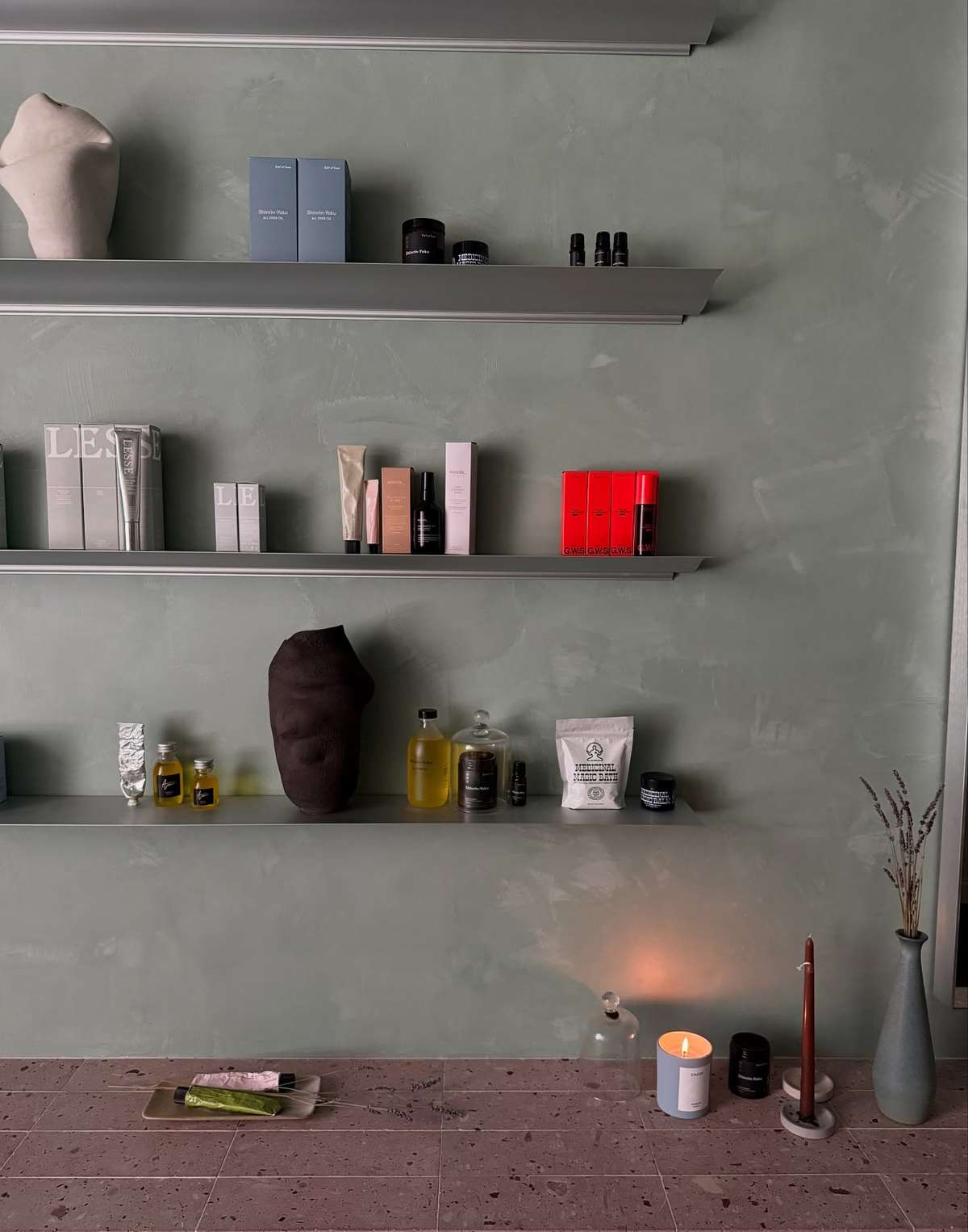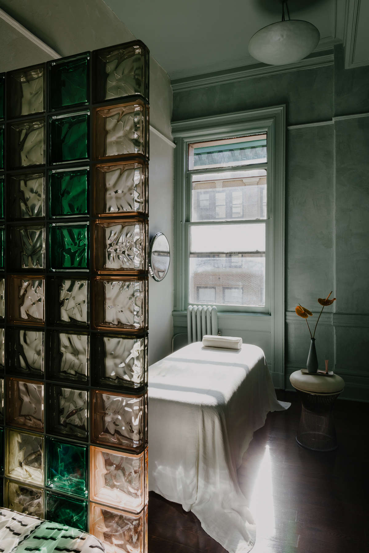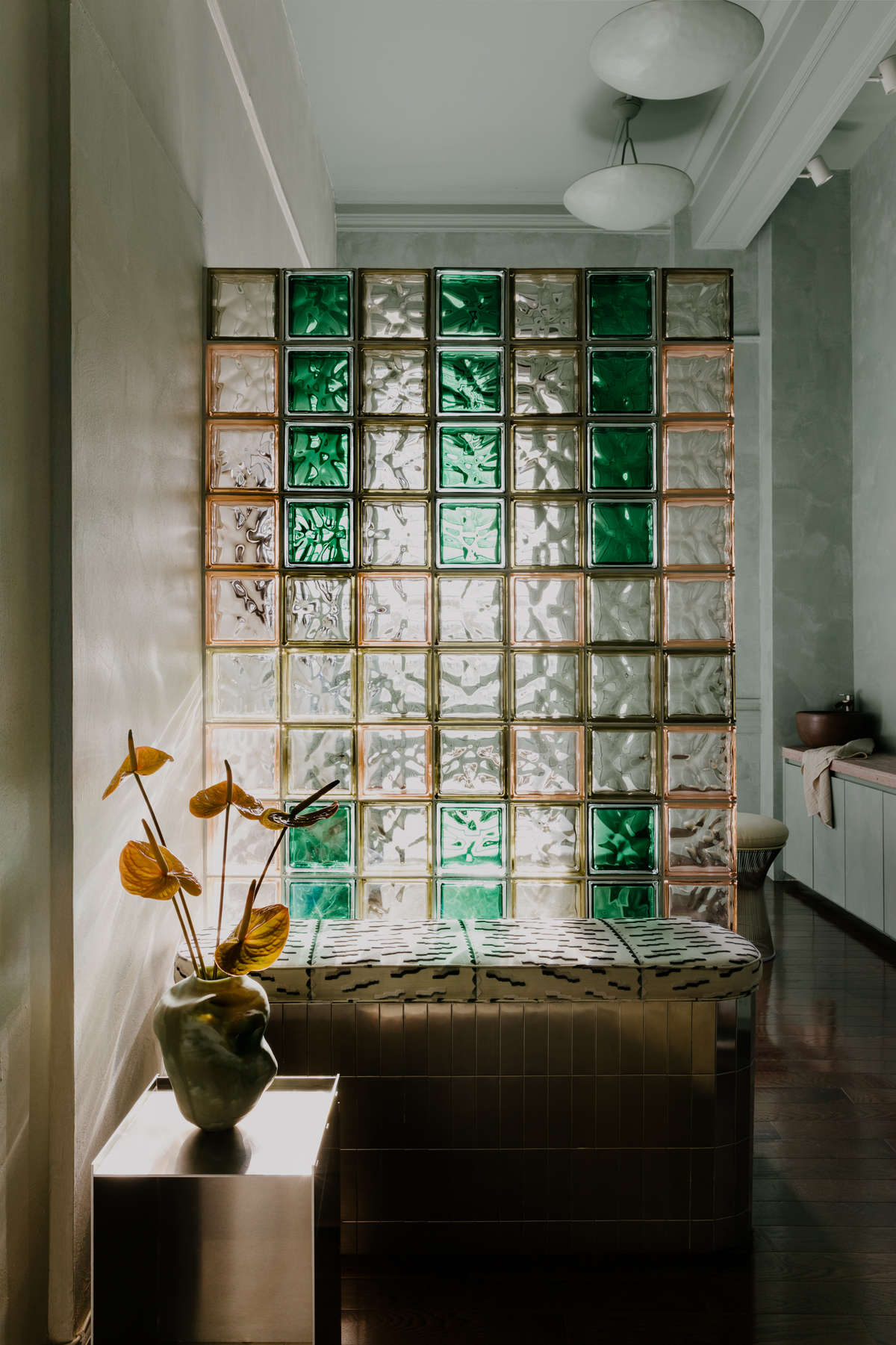 The interior of your space feels very intentional – from the colour palette to the dappled light through the glass bricks. How does the space itself play a role in the overall experience?