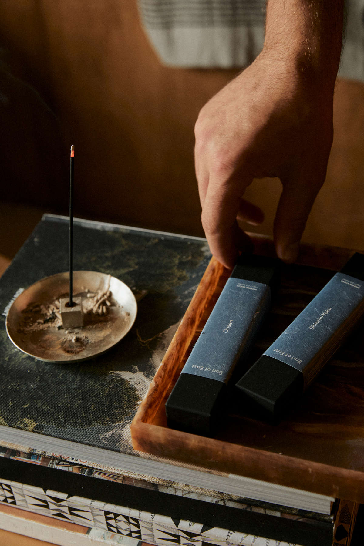 Incense or your favourite candle. Keep it simple, and let it move through the space while doors are slightly open.