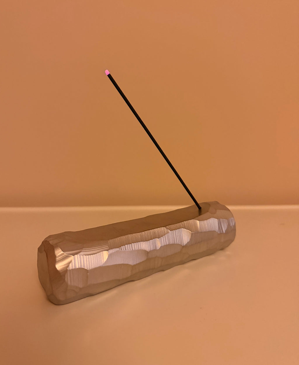 Handcrafted from and carved from a single piece of round billet, the incense holder by Byron is weighty and a stunning piece for your home.