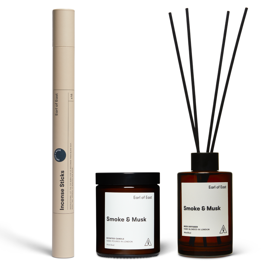 Designed to scent the home from day to night, the Scent Layering Set in Smoke & Musk brings together three complementary formats to build a soft, continuous fragrance ritual. Featuring our Incense Sticks, 170ml Candle and Reed Diffuser, this set allows you to layer scent throughout your space.
