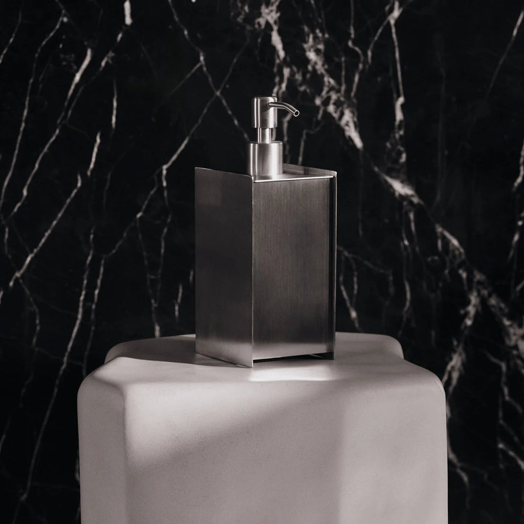 The Sama Soap Dispenser is part of the Sama Series of brushed stainless steel bathroom essentials. Defined by its sharp, geometric shape, the stainless steel design is both refined and practical.