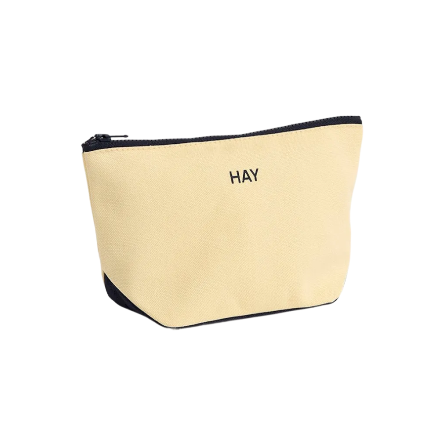 The HAY travel pouch bag is compact with a spacious interior for on the go beauty and packing.