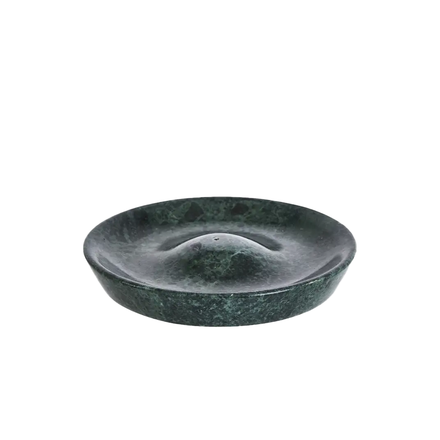 Madam Stoltz | Round Marble Incense Holder - Dark Green