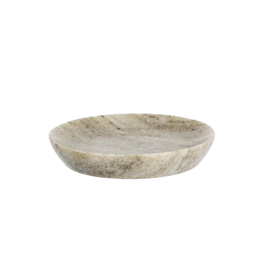 This round marble tray, sourced from India, features a timeless design in a soothing beige hue. Hand-carved from natural stone, it offers a touch of luxury. Ideal for small servings or as a jewellery holder.